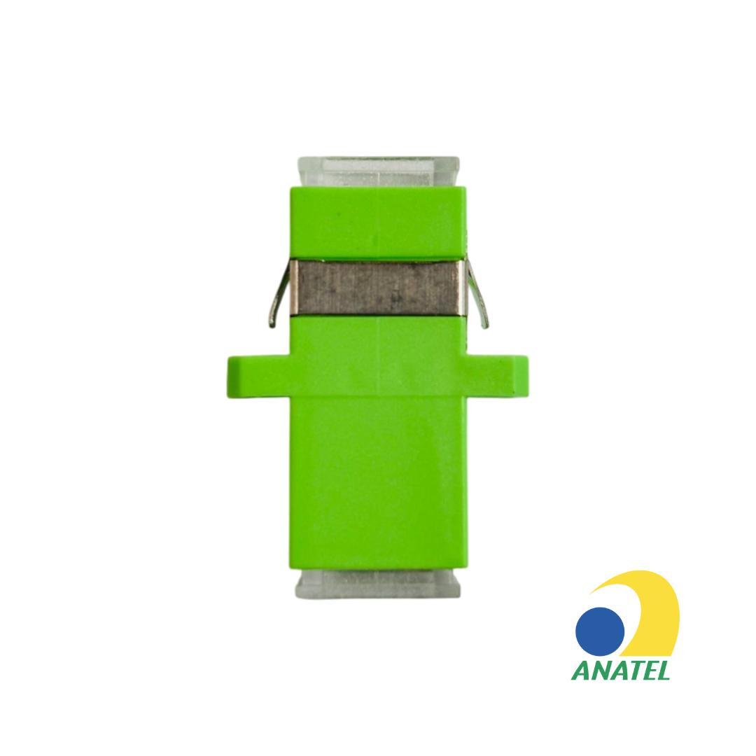 Adaptador / Acoplador Óptico, Simplex, SC ( APC ) x SC ( APC ), na cor Verde, com Aba Lateral para fixação